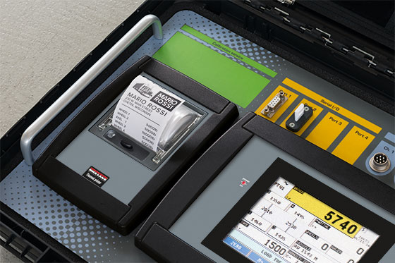 Optional remote indicator (backlit graphic display with touch screen technology) with integrated printer in carrying case